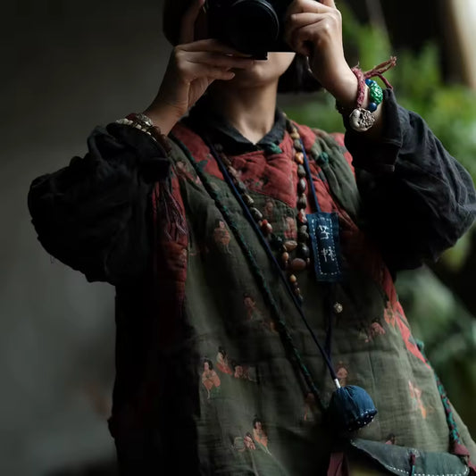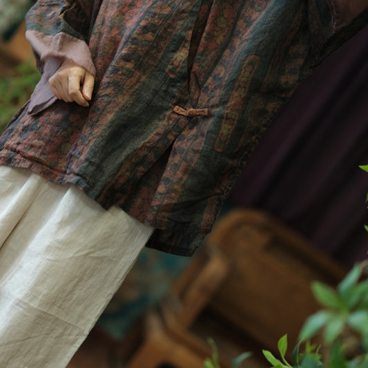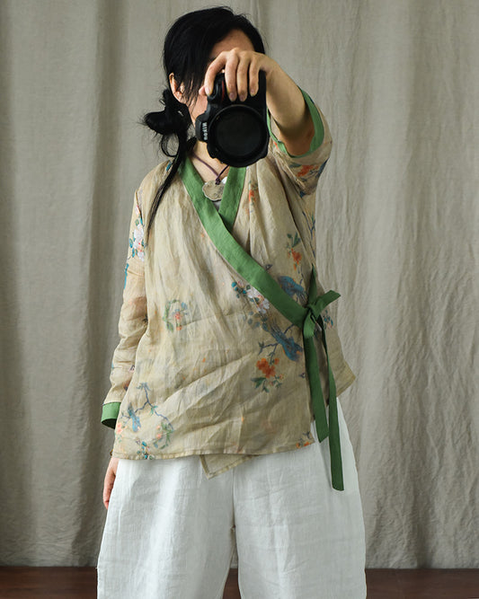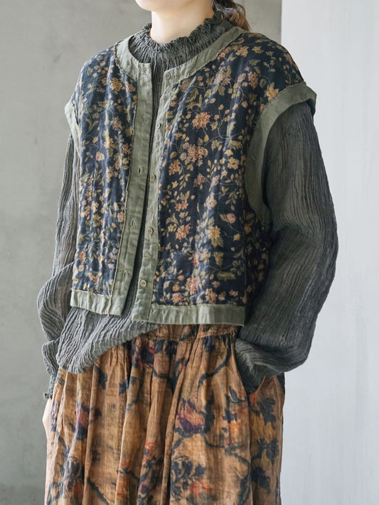 Vintage Floral Patchwork Ramie Blouse