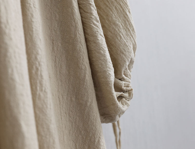 Made from 100% linen fabric, the Boho Breeze Linen Dress offers a relaxed yet stylish look with its loose sleeves and tie detail at the neckline. Its lightweight and breathable structure ensures comfort during warm days. The midi-length cut adds a natural and elegant touch to your everyday outfits.
