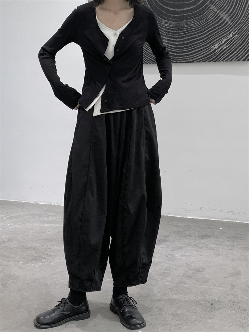 Blending vintage spirit with a modern touch, the Vintage Balloon Pants are crafted from durable and structured wool-felt fabric. Featuring special stitch details and a voluminous balloon silhouette, they offer timeless elegance.