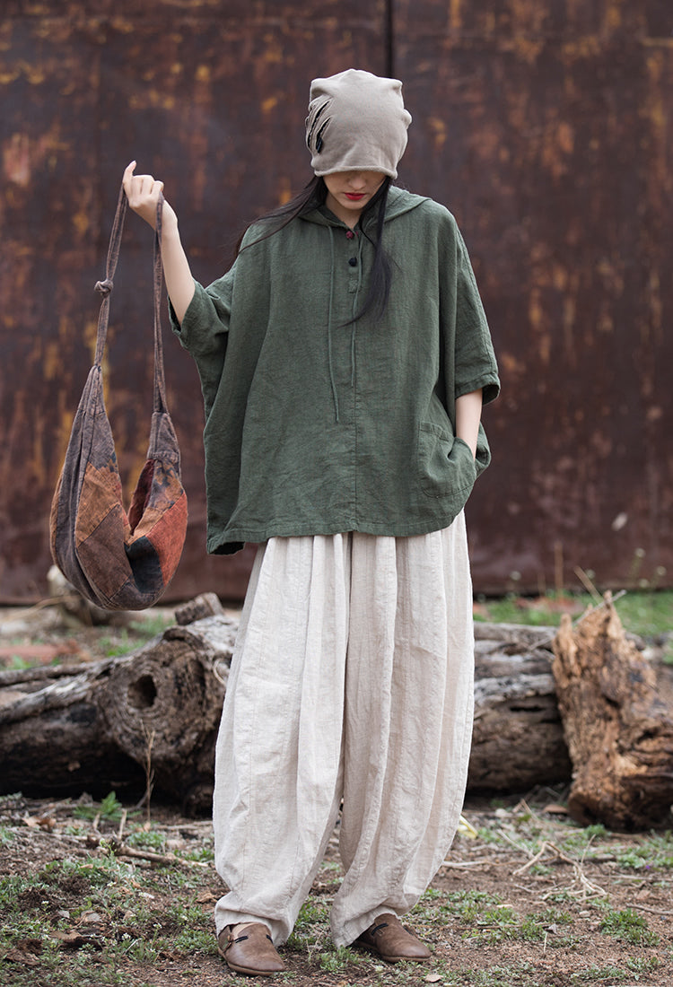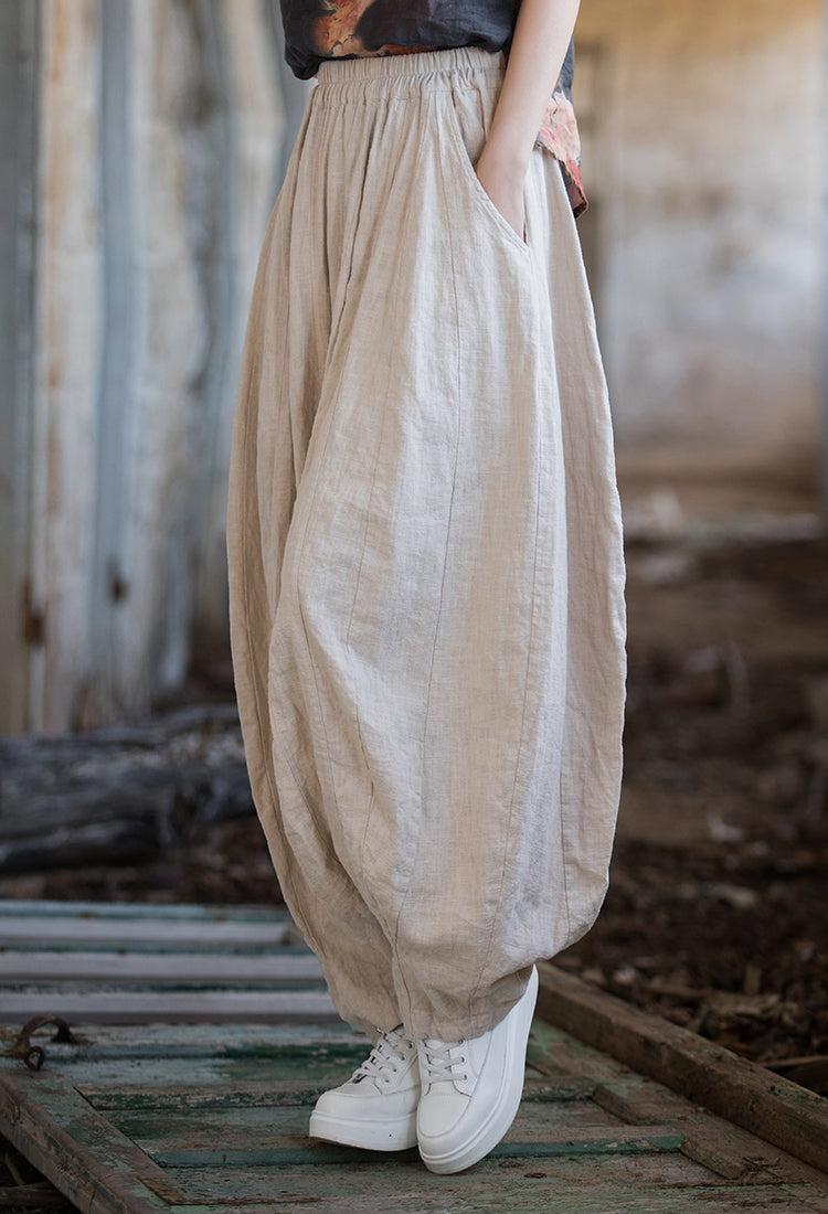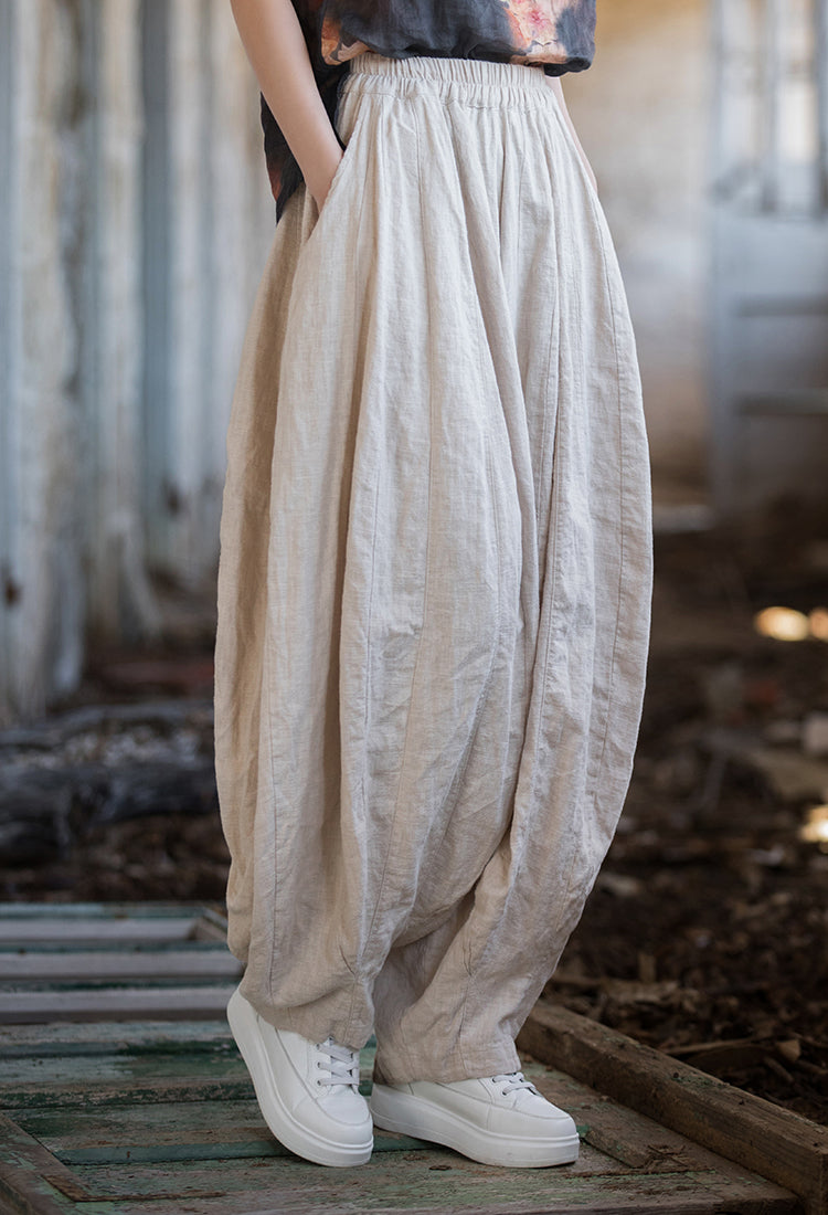 Bringing together comfort and style, the Vintage Breeze Rami Pants are made from a breathable and lightweight rami-cotton blend fabric. With an oversized fit and relaxed silhouette, they offer all-day ease. The elastic waistband ensures a flexible fit, while the spacious pockets add practicality. Thoughtfully designed with unique stitching details, these pants embrace a vintage-inspired aesthetic for effortless everyday wear.