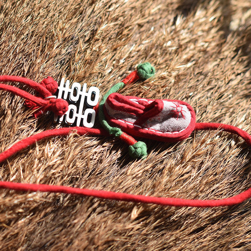The Vintage Silver Accessory Necklace stands out with its elegant details and nostalgic design. Featuring a unique shoe-shaped figure embroidered on a fabric texture, this necklace is adorned with silver metal accessories that add a distinctive sparkle. Perfect for both daily outfits and special occasions, this piece brings a sophisticated touch to your style. Reflecting the elegance of vintage fashion in a modern way, this special accessory will set you apart.