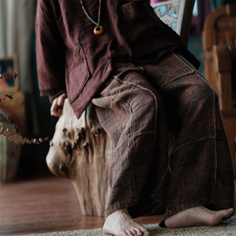Doté d'une taille élastique pour un ajustement flexible, ce pantalon présente une silhouette ample et décontractée qui offre une grande liberté de mouvement tout en soulignant un style bohème décontracté. Son motif floral vintage intemporel apporte une touche artistique, le rendant idéal aussi bien pour les tenues décontractées que pour les occasions plus raffinées.