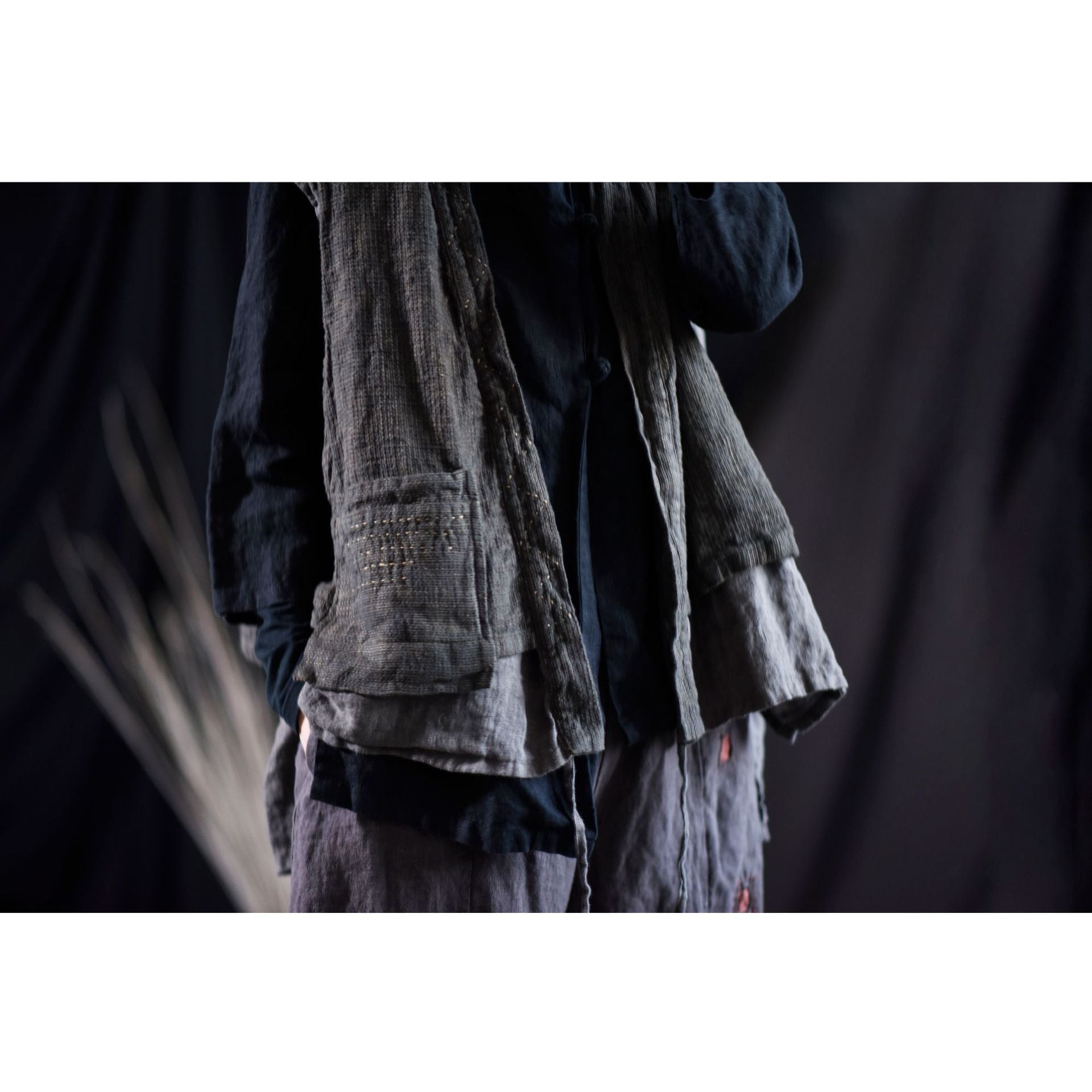 - Detalles: Tejido de doble capa, detalles de bolsillos.