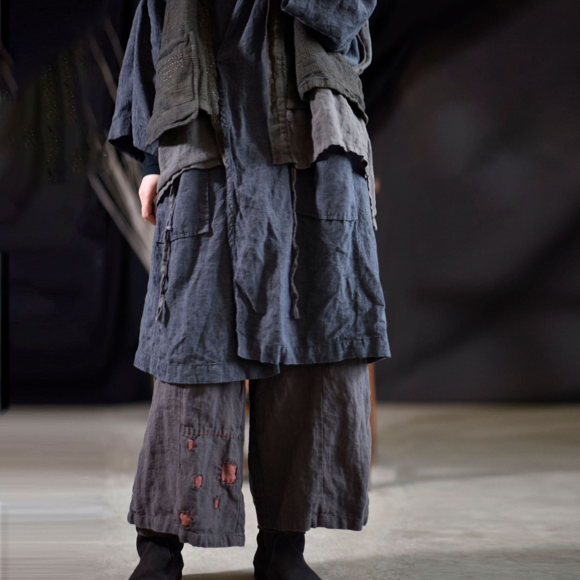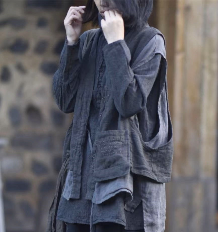 Chaleco de lino con bolsillos en capas