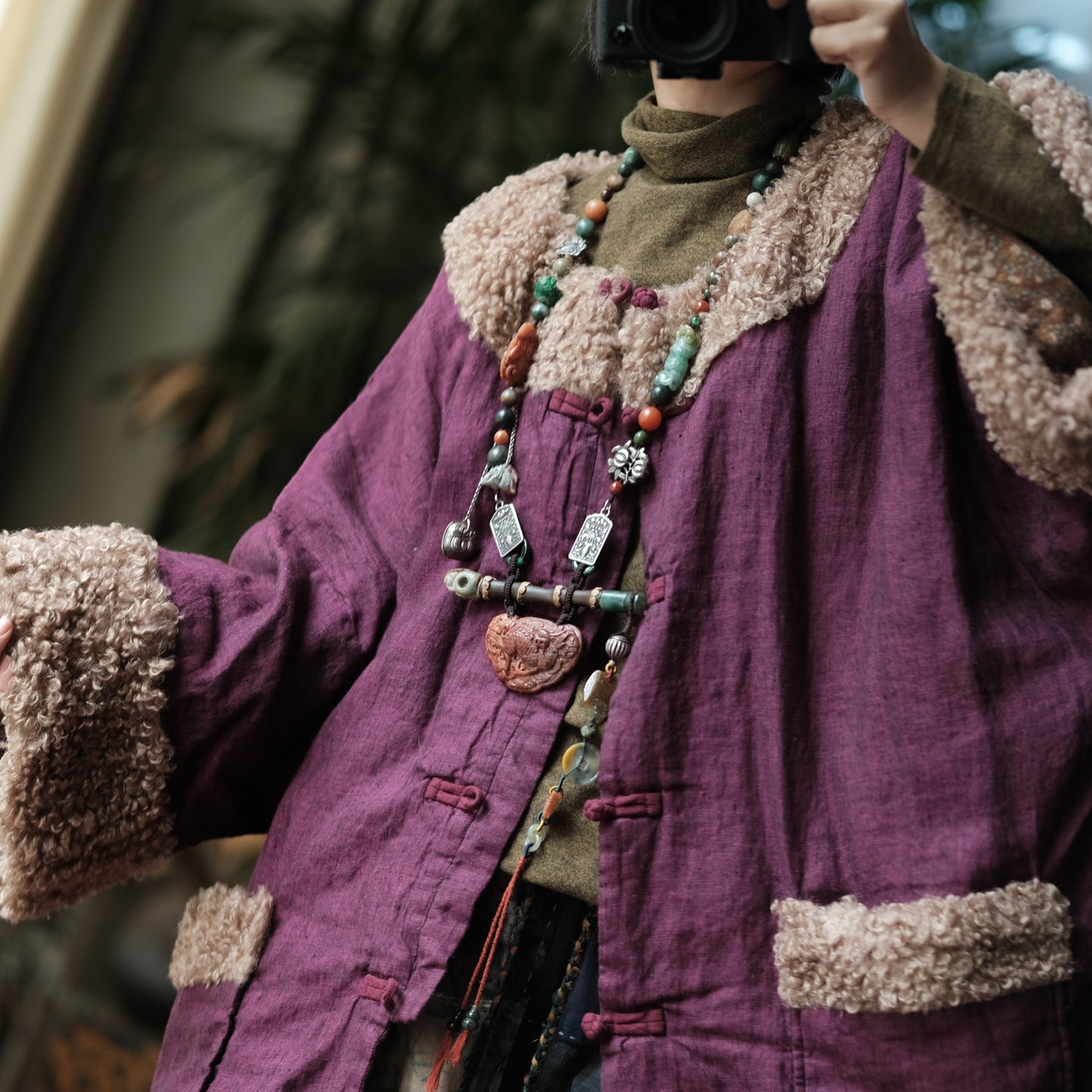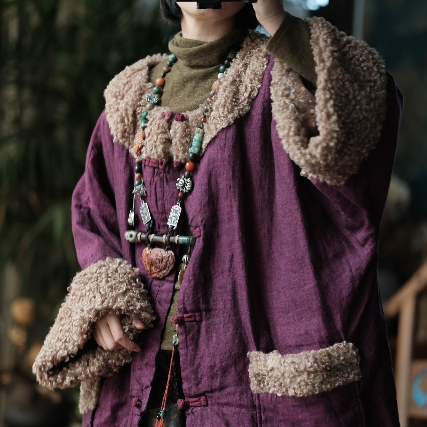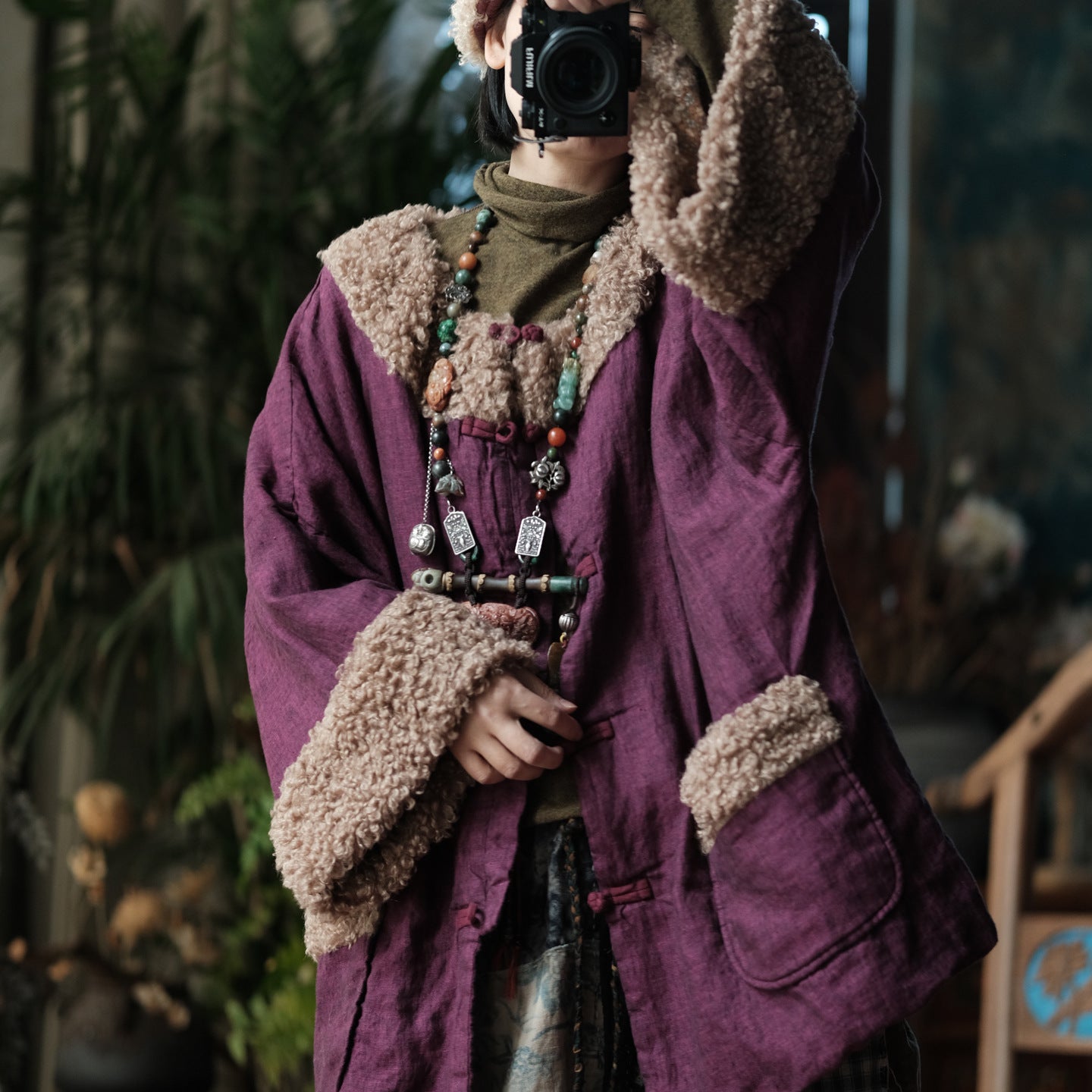 Finished with a button-front closure and practical pockets, this parka balances functionality with artistic design. Perfect for women who appreciate natural fabrics, loose fits, and timeless winter pieces with character.
