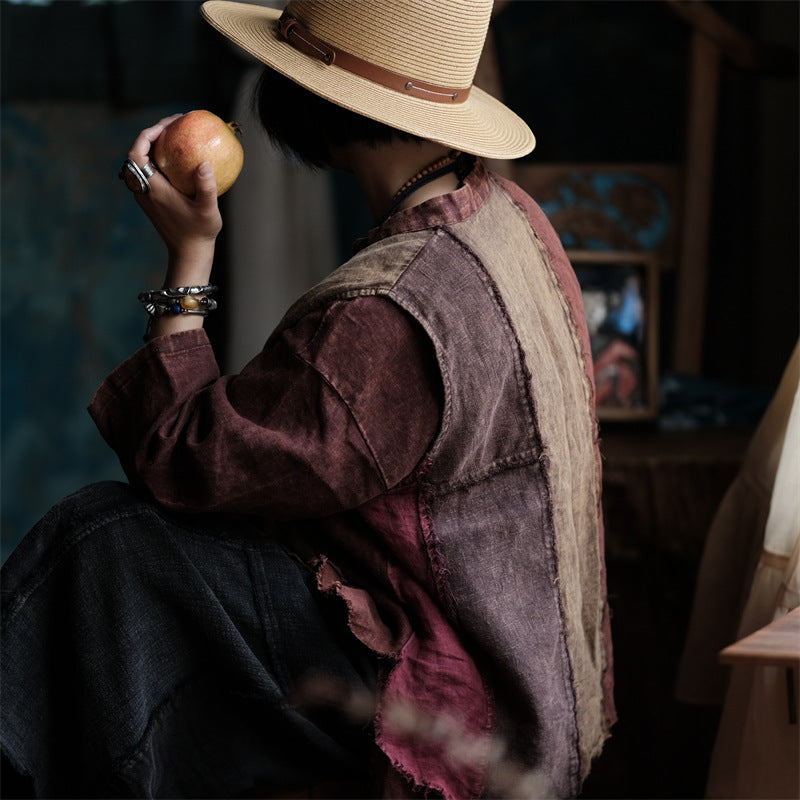 Este chaleco, confeccionado en lino 100 %, es una combinación atemporal de elegancia y comodidad. Su llamativo patchwork en varios colores y patrones realza cualquier look con un estilo bohemio y un encanto vintage. El diseño sin mangas muestra la textura ligera y transpirable del lino natural, mientras que los botones forrados en tela en la parte delantera añaden un toque refinado. Perfecto tanto para conjuntos casuales como para ocasiones especiales, este versátil chaleco sin duda se convertirá en un básico de tu armario.